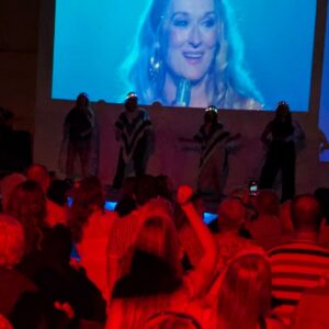 Open air cinema under the Skiathos stars. Local dancers, 200 people, everyone singing