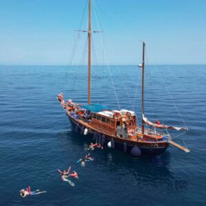 Private wooden sailboat, private cook on deck, hidden beaches only reachable by water.