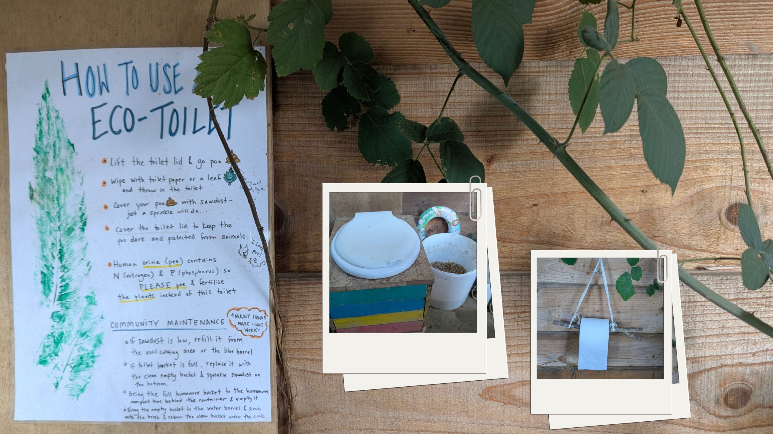 For pee, we encourage you to choose a tree or a patch of thirsty plants — nature loves the nutrients, and it helps keep the toilet buckets dry.