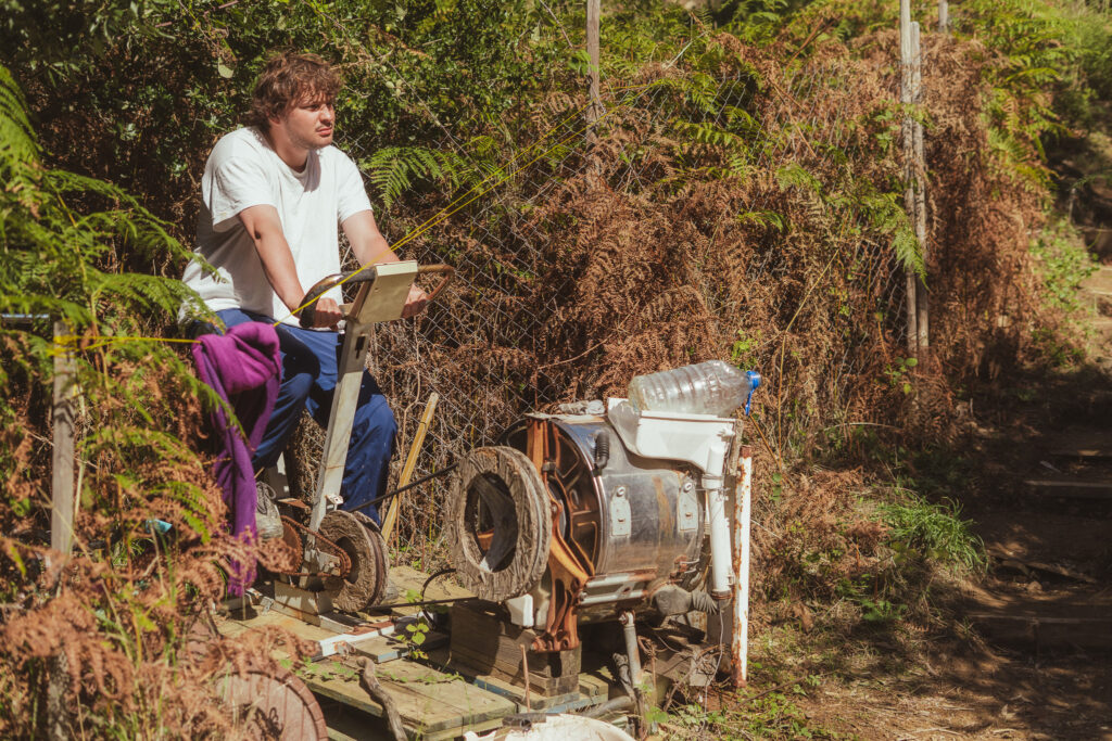 We wash clothes using a pedal-powered laundry bike — eco-friendly and fun. Sort your laundry, follow the small-step washing instructions, and take turns using the bike. On rainy weeks, washing might be delayed, so pack enough clothes for unpredictable weather and mud. We wash the sheets in the automatic laundry machine in town. Let us know if you want to join the next laundry expedition, it costs 5€/machine (without drying).