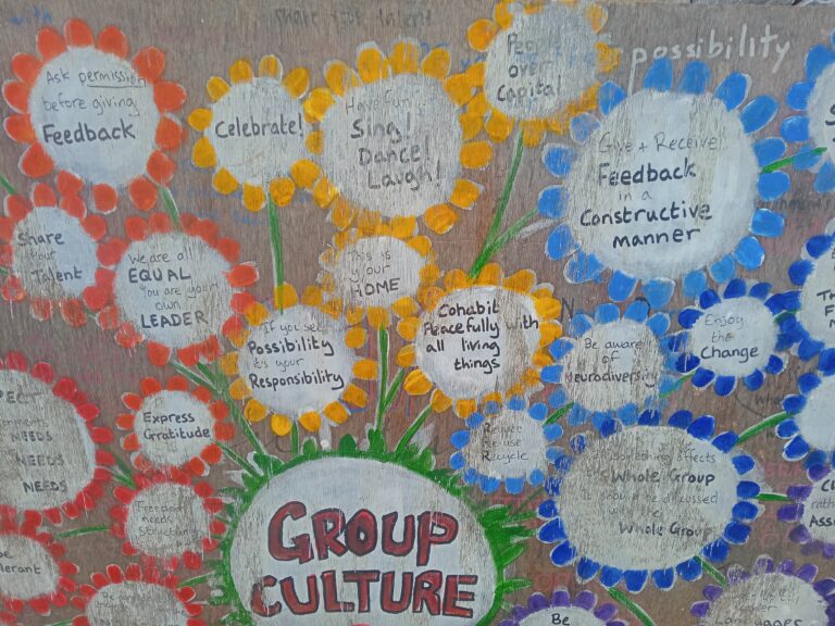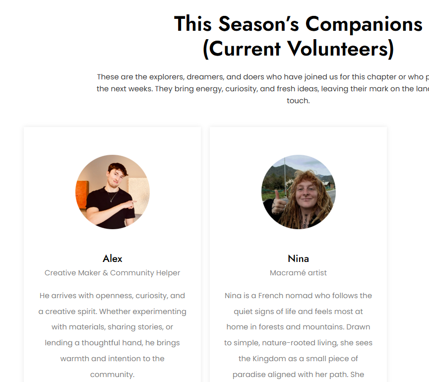We meet every morning for a circle to plan the day, share needs, and check in as a group. Each time someone new arrives, we go through our group culture board together, making sure everyone feels aligned and supported. At the core, we are all equals here — there is no hierarchy, and everyone is responsible for managing their own working time and time off. We value clear communication, kindness, initiative, and flexibility, especially in a community made of many different people. Everyone cooks, cleans, and participates in maintaining the space. Living together outdoors asks for awareness, respect, and a willingness to adapt.