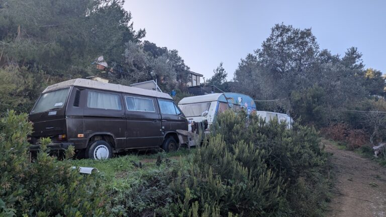 You’ll stay in simple off-grid accommodation: tents, small rooms, or caravans depending on availability and season. Electricity comes from solar panels, water is limited, and most of our life happens outdoors. We cook and eat together, share daily tasks, and adjust to the rhythms of nature — sun, wind, rain, and the occasional wild goat.