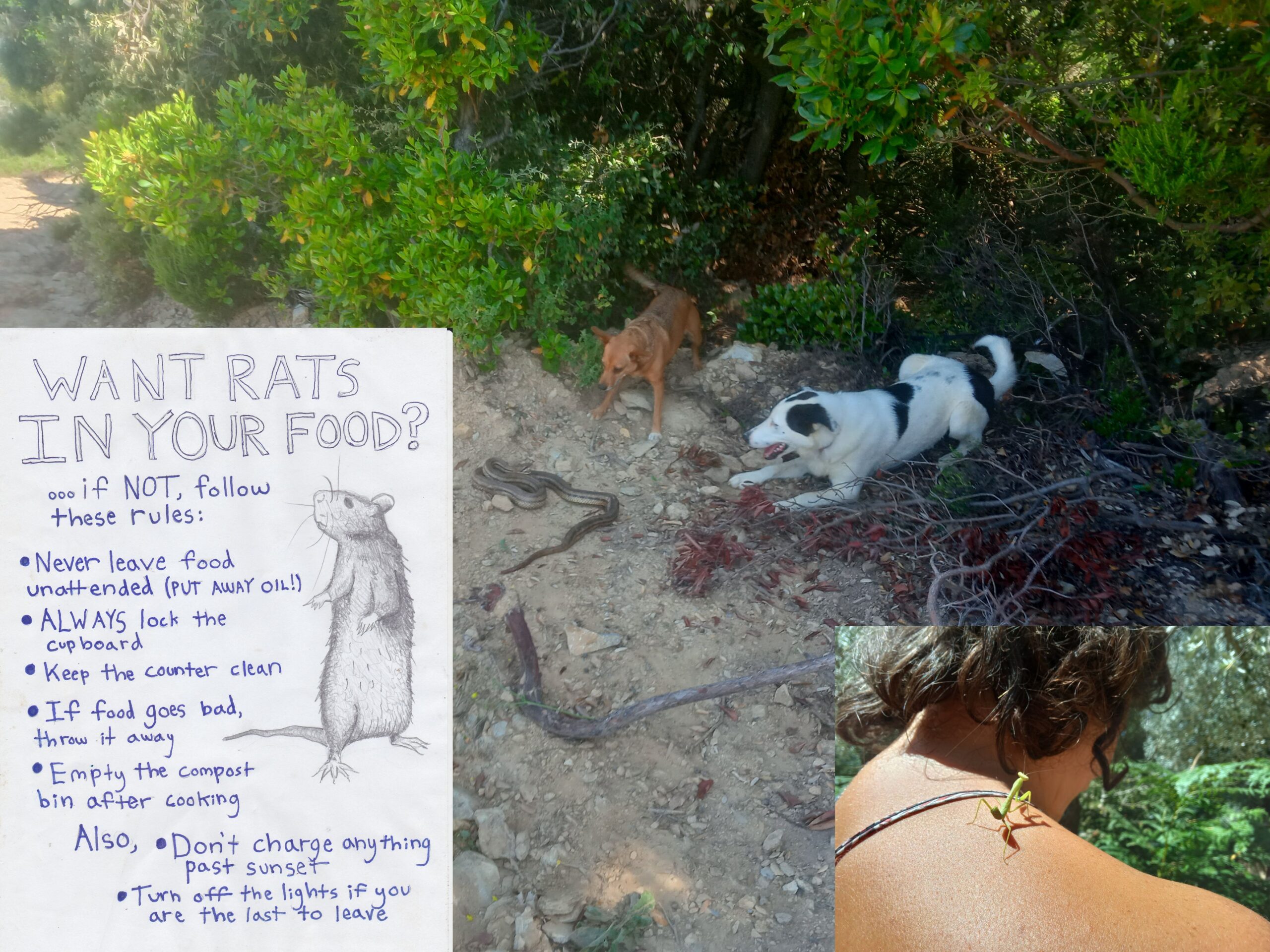 When you arrive, we’ll also go through our safety guidelines for local wildlife such as snakes and scorpions. None of the species we’ve encountered on the land are dangerous, though vipers do exist on the island, so awareness is essential.