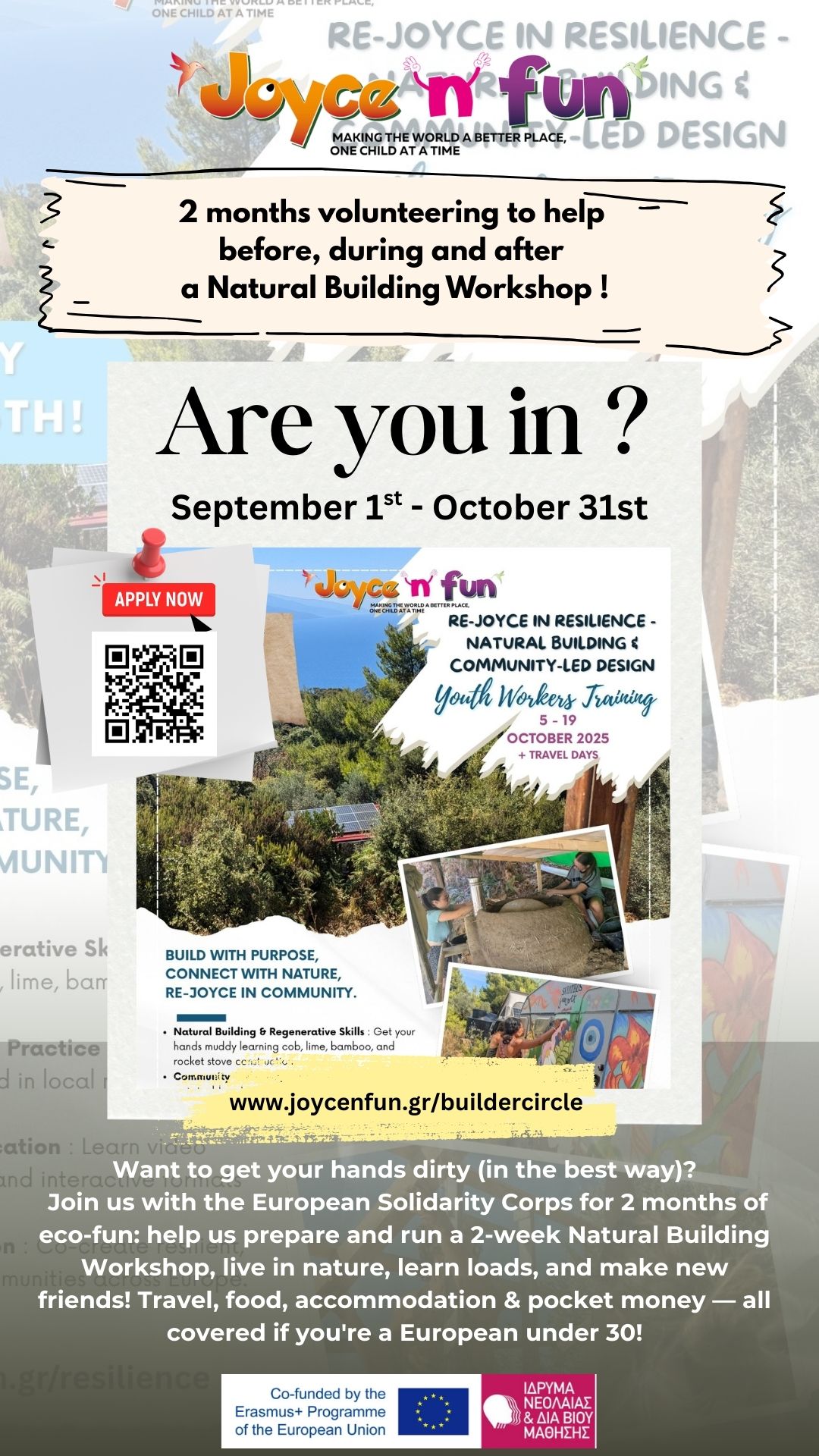 YW Training from 5th and 19th of October 2025 in Skiathos, Greece : Re-joyce in Resilience – Natural Building & Community-Led Design