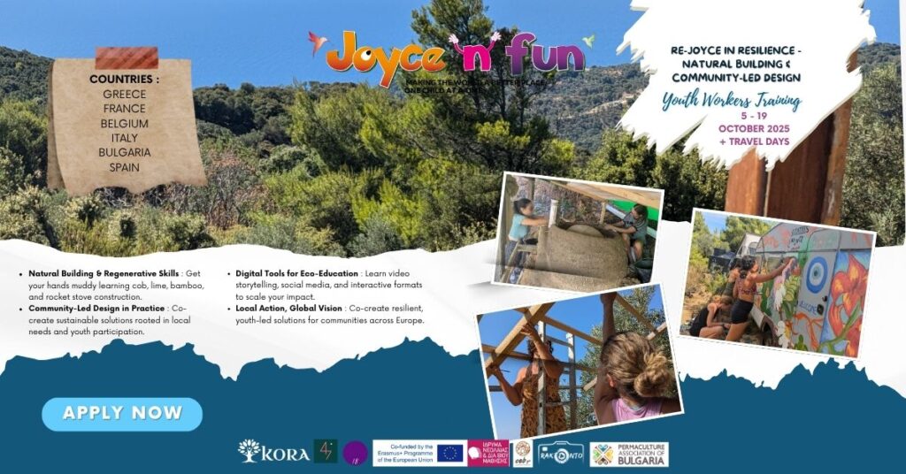 YW Training from 5th and 19th of October 2025 in Skiathos, Greece : Re-joyce in Resilience – Natural Building & Community-Led Design
